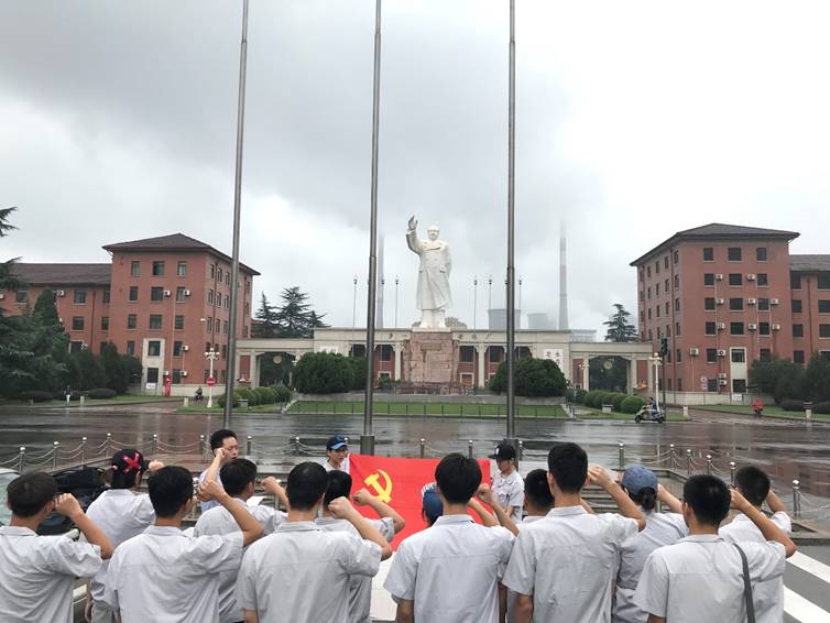 大会伊始,张晖老师阐述了党员的发展情况,并就成立临时党支部的目的和实习期间工作做了详细的介绍,同时宣布临时党支部正式成立。希望大家在实习期间牢记自己作为党员的责任,加强党的知识学习,提升个人的党性修养,做一个有理想有抱负的共产党员。除此之外,希望员工党员能够以身作则,发挥模范带头作用,以自身的优良作风去感染身边同学,并做出正确引导。最后,在雄伟的毛主席塑像前,大家在支部书记张晖老师的带领下,冒雨郑重地宣读了入党誓词,会议也在大家铿锵有力的誓言中落下了帷幕。