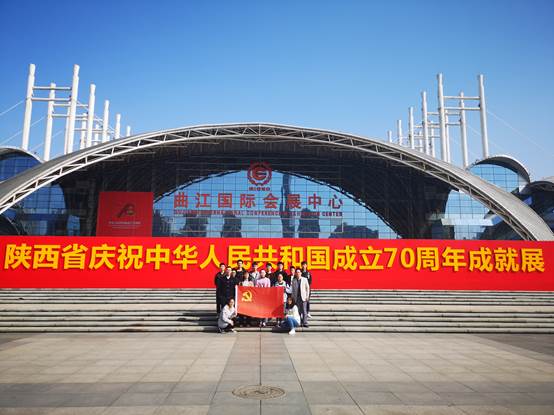 10月17日下午,公司员工第一党支部全体成员在曲江国际会展中心门口集合,由张晖、刘昊雨老师带领参观学习“陕西省庆祝中华人民共和国成立70周年成就展”。