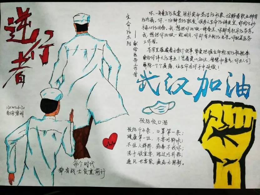 面对来势汹涌的新冠肺炎疫情,best365官网入口注册第五党支部的同志们响应号召,在做好自身防控的同时,“不忘初心、牢记使命”,在危难时刻挺身而出,全力支持疫情防控工作,担当起自己的社会角色和使命,为坚决打赢疫情防控站贡献青春力量。本支部张笑同志主动向当地社区申请成为一名志愿者,在街道协助政府值班人员进行体温登记及宣传疫情防控知识,为抗击疫情做出了自己力所能及的事;尚徐碧玥、钟存存、冯温柔等同志也通过绘画、诗歌、书信等形式为武汉一线奋斗的战士们送上美好祝福。