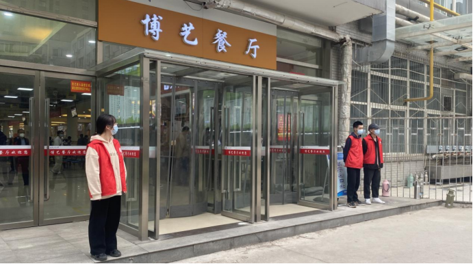 “我自愿报名参加志愿活动!”“有求必应,听从指挥,服从安排!”公司员工第七党支部成员积极参与志愿活动,以实际行动彰显党员风范。员工党员站在前,15名同学在公司餐厅不同门口进行执勤,负责文明督导校园内员工遵守疫情防控要求,时刻提醒同学们佩戴好口罩、不扎堆不聚集,有序排队、文明就餐,做好个人防护,协助公司做好疫情防控宣传教育工作。在疫情防控中发挥先锋模范作用,干好每一件小事,处理好每个防控细节,用实际行动守护同学和教职工的健康和安全,成为公司防控疫情战斗第一线的鲜明的旗帜。