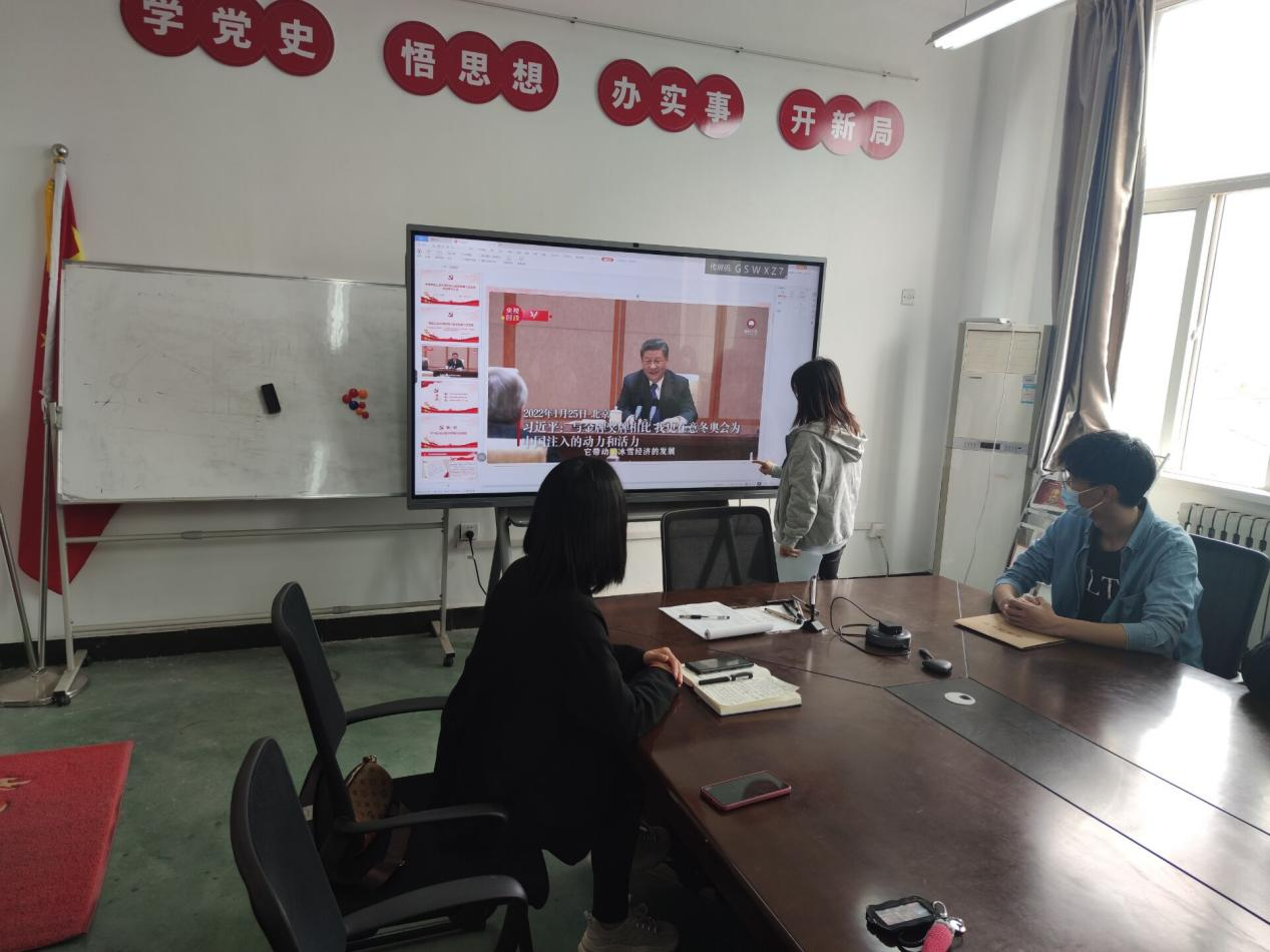最后支部书记唐雅莉总结讲话:北京冬奥会、冬残奥会是在全党全国各族人民向第二个百年奋斗目标迈进的关键时期举办的重大标志性活动,进一步增强了海内外中华儿女的民族自信心和自豪感。面向未来,要更加紧密地团结在以习近平同志为核心的党中央周围,把思想和行动统一到习近平总书记重要讲话精神上来,大力弘扬北京冬奥精神,踔厉奋发、笃行不怠.
