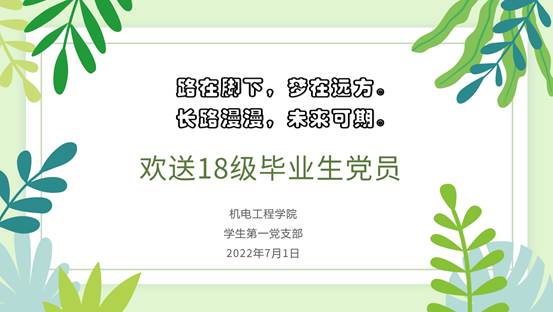 7月1日,公司员工第一党支部开展以“路在脚下,梦在远方;长路漫漫,未来可期”为主题的会议,欢送18级毕业生党员,会议由支部书记张岩主持,全体党员参会。
