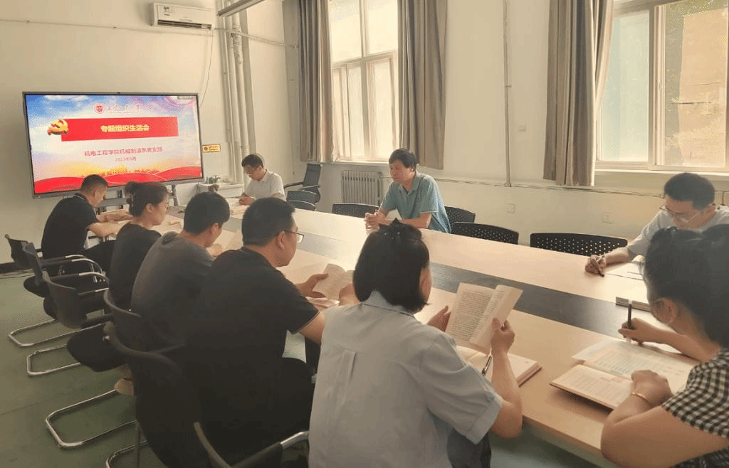 9月8日上午,机械制造系党支部在工2-221召开学习贯彻习近平新时代中国特色社会主义思想主题教育专题组织生活会,会议由支部书记张耿主持,包括公司党委书记路金龙在内13名党员同志参会。