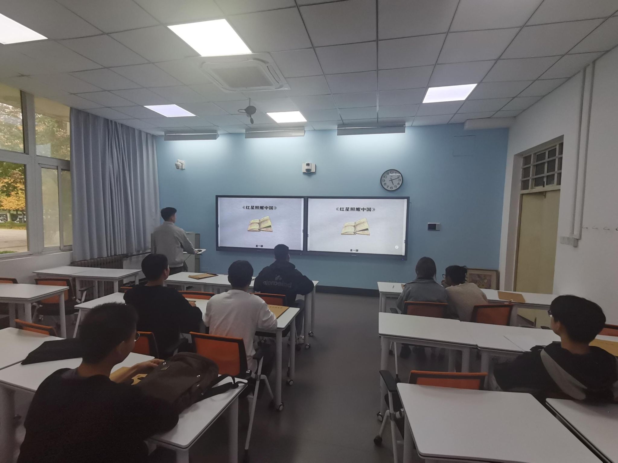 活动伊始,穆劲洲同学带领全体成员与会同志共同通过视频简要阅读了埃德加斯诺的《红星照耀中国》,该著作是一部文笔优美的纪实性很强的报道性作品,作者真实记录了自1936年6月至10月在我国西北革命根据地(陕甘宁边区)进行实地采访的所见所闻,向全世界真实报道了中国和中国工农红军以及许多红军领袖、红军将领的情况,毛泽东和周恩来是斯诺笔下最具代表性的人物形象。通过简读这本书,同学们深深感受到了中国红军战士们及共产党的魅力,爱人民,是因为明白了红军战士们的初衷,为人民服务,理解他们,成为他们,然后更加热爱我们的祖国。