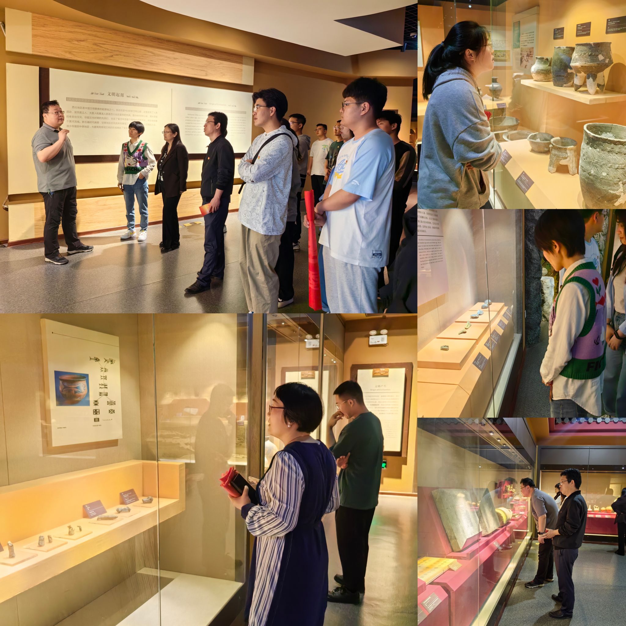 随后,全体师生党员依次参观了历史馆、丝路遗珍馆、生物馆和地球馆。在历史馆和丝路遗珍馆中,通过馆中陈列的珍贵文物,深入了解了陕西及西北地区史前文化发展与文明起源、周秦汉唐盛世文明风貌、中外各族文明交往;在生物馆和地球馆中,观察了栩栩如生的古生物化石、地质年代标本和秦岭特有的动植物标本,探索了地球亿万年的生命演化,欣赏了自然界物种繁多的生态画卷。