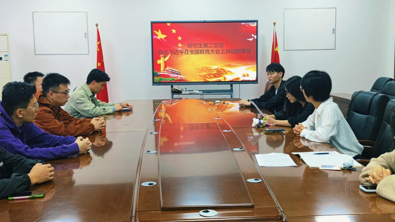 10月25日上午,研究生第二党支部开展了关于习近平总书记在全国教育大会上讲话精神的学习会议。党支部书记唐雅莉与党支部全体员工党员共同参与了此次会议,会议由党支部副书记许露洁同志主持。