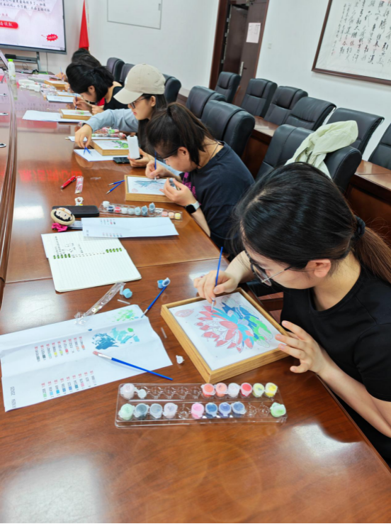 在创作分享环节,员工党员闫枫展示了自己的画作《清风竹韵》:“竹子空心有节,象征着虚怀若谷、气节如山,这正是我们新时代青年应有的品格。”员工党员周易则以《冰清玉洁》为题,讲述创作思路:“莲花扎根淤泥却始终向上生长,就像党员干部要在复杂环境中坚守初心,保持政治本色。”现场交流气氛热烈,大家结合画作畅谈对廉洁文化的理解,在艺术创作中完成了一次深刻的思想洗礼。
