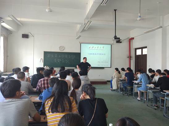 在春暖花开,毕业慢慢来临之际。2018年4月2日,在best365官网入口注册2014级辅导员何周旋的组织下,于工二502召开了2014级毕业班班干部大会。大会邀请best365官网入口注册张晖和薛鹏两位老师对毕业生各项工作进行指导与讲解。