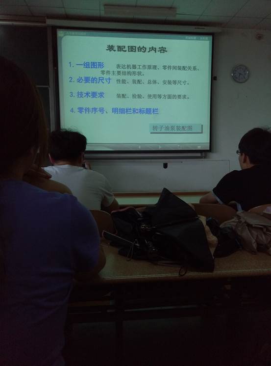 讲座一开始,高教授首先向同学们讲解了规范使用AutoCAD制图的重要性。随后高教授运用自己制作的PPT,采用一边讲解规范要求一边举例的方式向同学们详细讲解了装配图的规定画法、技术要求、所需表达的内容和装配图的七种特殊表示方法。紧接着,高教授拿出自己所带员工的图纸并结合历届毕业图纸中存在的问题与经验,就AutoCAD制图格式规范方面容易出现的问题进行了例举,并现场传授同学们设置标注字体的方法。