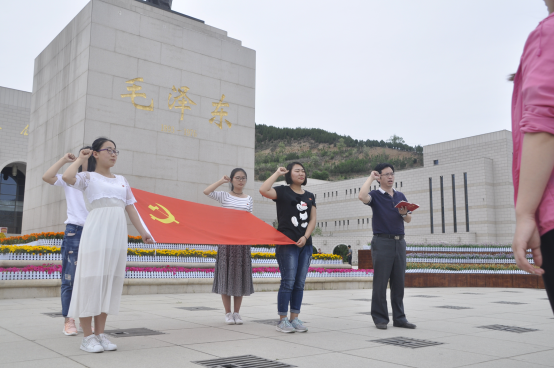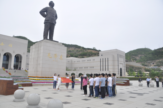 13日清晨,我们一行30余人,首先来到枣园。当看到那一排排简陋的窑洞,简朴的用具以及讲解员告诉大家:就是在这个世界上最小的指挥部里,毛主席和他的战友们,指挥了全世界最大的人民战争,经过艰苦卓绝的奋战,夺取了全国革命的胜利时,同学们热血沸腾,崇敬之情油然而生。枣园这盏“灯光”不仅照亮了中国革命,也照亮了我们前进的方向;下一站是杨家岭,步入杨家岭的中央大礼堂,站在中共七大会场中央,我们仿佛听到主席在掷地有声地讲着“团结一致,取得胜利”,似乎是在告诫我们只有团结身边的力量才能取得人生道路上的胜利。参观完杨家岭旧址,大家对杨家岭这面“红旗”又有了新的理解;接下来我们来到了延安革命纪念馆,当听到共和国的奠基者们一个个生动感人的故事,当大家在发黄的照片和件件文物中徜徉时,大家对习近平总书记的哪句“宝剑锋从磨砺出,梅花香自苦寒来”的勉励又有了更加深刻的感悟,走出纪念馆的大门,大家不约而同地来到了毛主席的雕塑前,就此、我们在主席的塑像前一起重温入党誓词,发自内心的铿锵的誓言,使得一些同学的眼中不时有泪花在闪动。