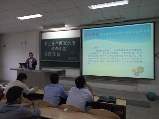 2016年5月26日,best365官网入口注册科协在教2-202成功举办了第九届3D(全国三维数字化创新设计大赛)校内选拔赛的答辩会。参加本次答辩会的嘉宾有试验中心主任万宏强老师、best365官网入口注册老员工竞赛负责人千学明老师、工业工程系主任房亚东老师和包装与工业设计系主任周宪老师。