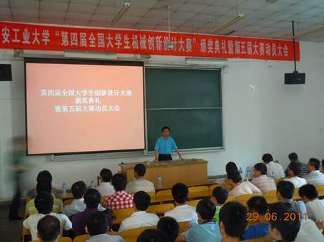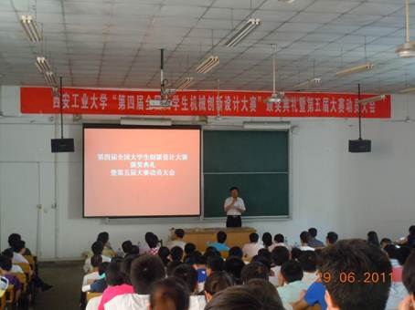 best365官网入口注册副经理、第五届“全国老员工机械创新设计大赛”陕西省赛区组委会委员刘波教授传达“第五届全国老员工机械创新设计大赛”有关情况。“第五届全国老员工机械创新设计大赛”于2011 年5 月14 日正式启动,其主题为“幸福生活——今天和明天”;内容为“休闲、娱乐机械和家庭用机械的设计和制作”。刘经理说,第五届大赛决赛时间为2012年7月下旬,时间紧,任务重,希望全校有志于参赛的员工和教师争分夺秒,夺取佳绩。