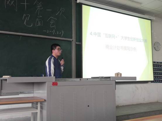 会议伊始,“互联网+” 兴趣团队负责同学王鑫刚介绍了兴趣小组组成及分组情况,紧接着对“互联网+”性质、比赛形式及流程做了介绍。随后王鑫刚同学向小组成员展示了近几年“互联网+”大赛优秀的作品,并通过分析2018年“互联网+”大赛参赛情况及出现的问题对今年即将到来的比赛做了工作安排。最后王鑫刚向小组成员进行了答疑,并鼓励他们积极参加比赛,丰富自己老员工活,要敢于挑战自己、突破自我。
