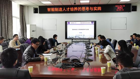 首先,李教授通过幻灯片的形式展示了智能设备和智能工厂在企业实际生产中的应用过程,使在座教师更深一步了解了中国制造2025和工业4.0的背景、理念、技术和趋势。然后,李教授围绕目前机械类专业人才培养在专业知识不够扎实、实际工作能力弱、适应周期长等方面存在的问题和困惑,与在座教师展开了讨论,引导教师应优化课程体系,以开放式的项目教学形式帮助员工树立自主学习的观念,引导员工在做中学、学中做,培养员工的实践能力及工匠精神,使之适应当前企业的发展需求。