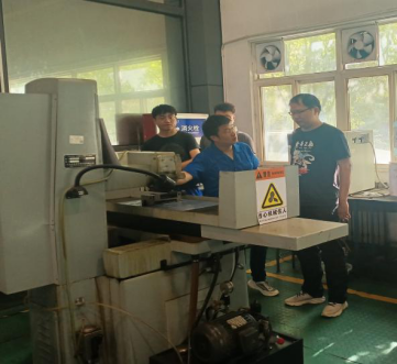 随后,董凯老师认真耐心地讲解了实验室安全知识,讲解内容覆盖特种设备、机械设备、危险化学品、用电安全和危废处理等多个方面。董老师通过事故案例、各类图片、视频使同学们从思想上认识到实验室安全教育的重要性;张博宁、张博二位老师现场指导员工安全操作数控车床和平面磨床,规范实验室安全行为,做到安全理念内化于心,外化于形。