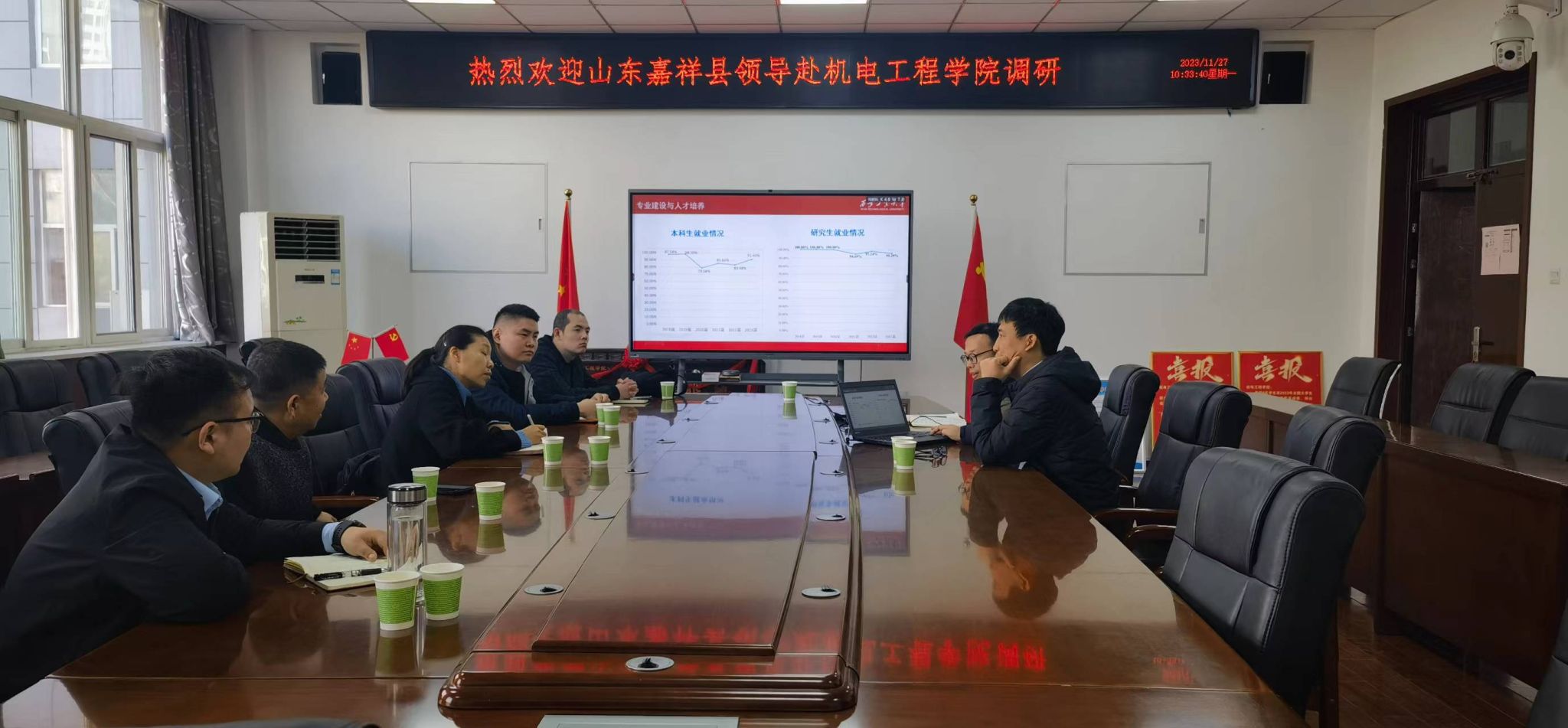 王洪喜对任丽娟一行的到来表示欢迎,并介绍了公司专业设置、毕业生人数、员工特点以及毕业生就业意向、团队建设水平与学科研究、技术研究特色、目前阶段科研重难点工作。