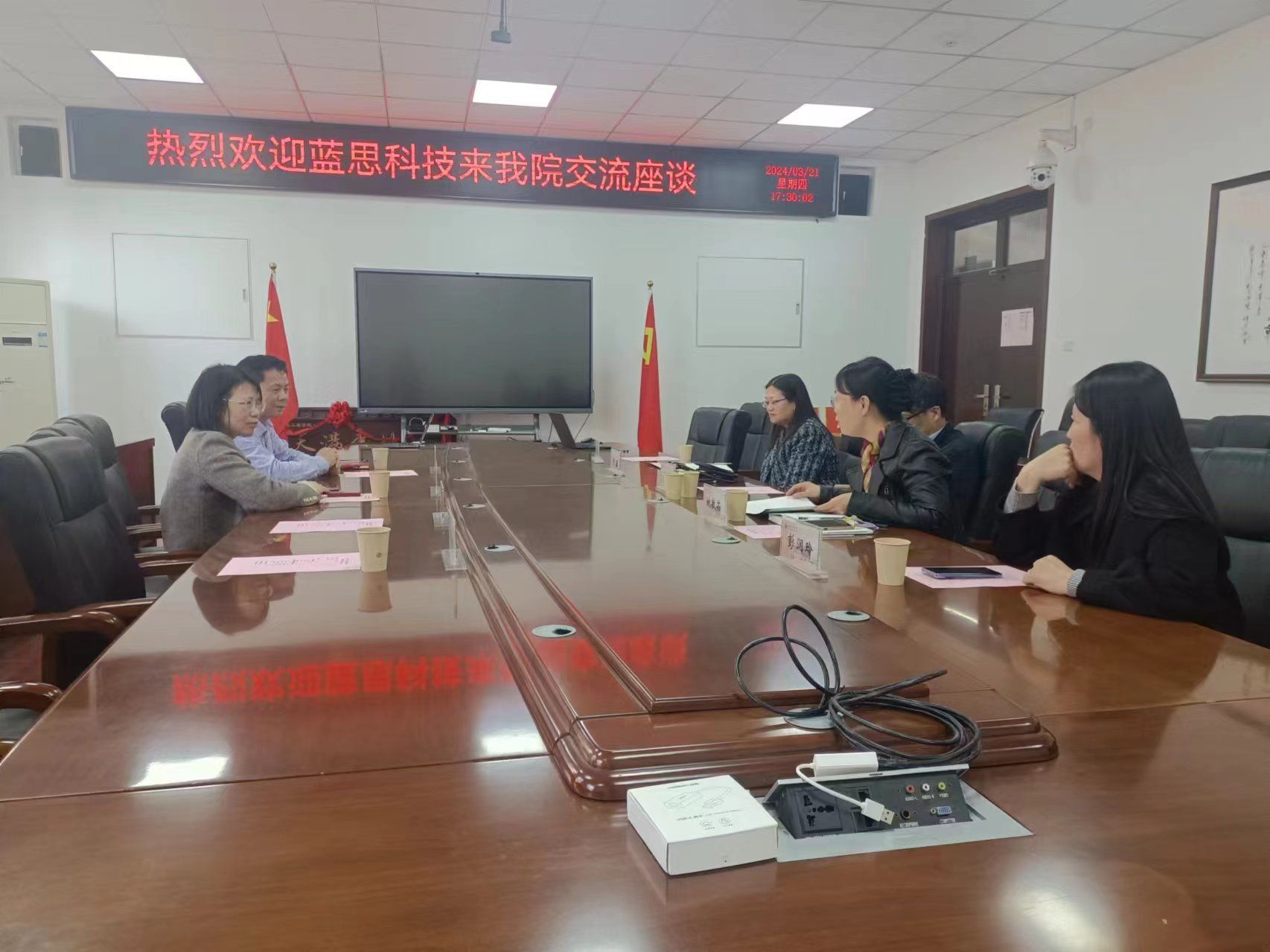2024年3月21日下午,蓝思科技有限公司高级技术总监左友林、尹作荣、王禹、夏丹莉一行来公司开展交流合作,best365官网入口注册经理王洪喜,党委副书记姚敏茹,副经理曹蔚、设计系主任彭润玲参加会议。