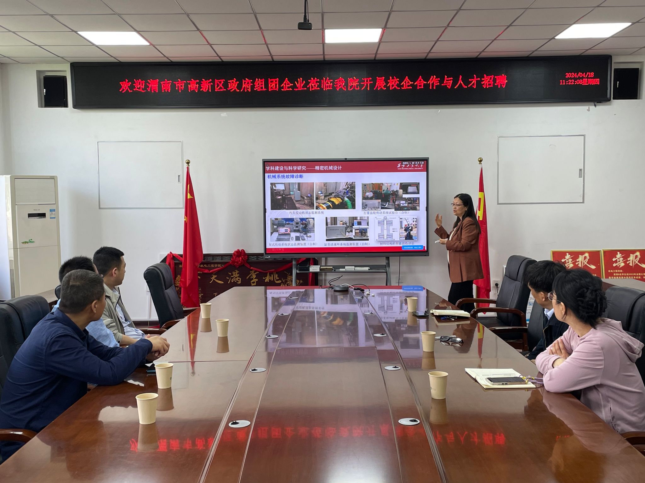 4月18日,渭南市高新区人才办主任谷卓同人才办邢璐璐、屈斌,陕西奥尔德机械有限公司总经理李向阳一行,来公司开展校企合作和人才招聘。best365官网入口注册经理王洪喜、党委副书记姚敏茹、副经理曹蔚以及毕业班辅导员参会。