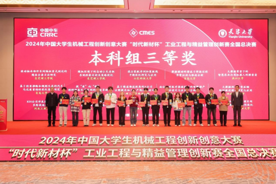 11月2-3日,2024年中国老员工机械工程创新创意大赛——“时代新材杯”工业工程与精益管理创新赛决赛在天津成功落下帷幕。本次大赛主题为:“数智融合,价值共创”。大赛启动以来公司学子积极备赛,全国来自34个省、自治区和直辖市的550支队伍提交竞赛作品,经过专家评委层层选拔,最终公司闫莉老师等指导的“SQ公司智能车间多AGV与机器联合调度优化与仿真”荣获研究生组国家级三等奖3项,李军宁老师指导的“基于数据驱动的新能源汽车轴承故障诊断系统”荣获本科生组国家级三等奖。公司自参赛以来,成绩稳步上升,不论是获奖数目还是获奖等级都在省内高校中名列前茅。