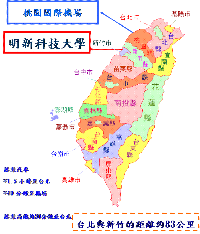 明新科技大学是一所位于台湾省新竹县新丰乡的私立科技大学,简称明新科大,目前有4个公司、21个学系、9个研究所。明新地处新竹县新丰乡,占地逾三十公顷,依傍省道纵贯线,毗邻中山高速公路,交通十分便利。四周山青树碧,得天独厚,饶适莘莘学子进德修业。日间远眺,则台海怒涛澎湃,风云幻化;入夜俯临,则竹堑华灯万点,璨若繁星。学子于课余之暇,赏心悦目,诚可相得益彰,共同淬练创校以来一贯“坚毅、求新、创造”的校训。