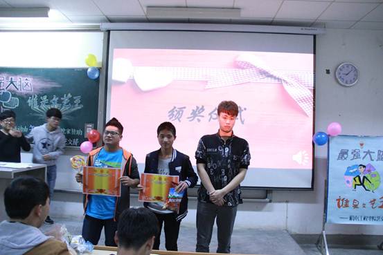 首先是诗词填空,参与活动的同学在主持人倒数时就蓄势待发,随机一声令下,大家都飞快的举起了手,像是刚刚出弩的箭,飞快的映入主持人的眼帘里。比赛此起彼伏,大家在分秒中积极的参与每一个环节。朗一首唐诗宋词、唱一曲青春之歌、挥一笔浓墨重彩、演一段神采飞扬。而中场游戏则在团委副书记王瑞旭和员工会主席陈嘉豪的带领下更是把现场带到了又一个高潮,同学们都不忘和自己伙伴默契配合,尽全力将自己最青春、最阳光的一面展示出来。最后的颁奖仪式宣告了本次活动的圆满结束。