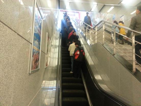 “左行右立” 是乘坐自动扶梯时靠右边站立,左侧留下以作应急道路,这是一种倡导文明出行、在交通高峰时期提升通行效率的行为礼仪。此次活动通过同学们在地铁引导、讲解,让行人知晓在公众场合乘坐自动扶梯时,能够自觉自愿做到 “左行右立”,文明出行,文明礼让。