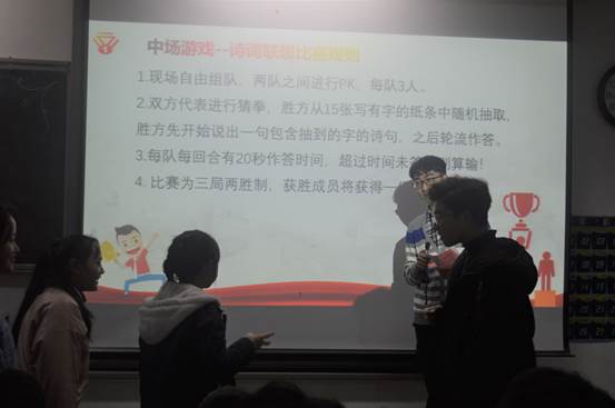 在一切准备工作完备之后,本次演讲比赛正式开始。通过前期的初赛,进入本次决赛的共有来自不同院的10位佼佼者。首先是经管公司的罗婉戈同学的演讲,优美的播音员式嗓音以及骨子里透出的演说家的身段征服全场。接下来的每位参赛选手都富有激情、具有创意,听着心潮澎湃、鼓舞斗志,感染了在场的每位嘉宾及评委。中场活动是一次参赛选手与评委的互动,以“飞花令”的形式展开,原本静谧的赛场变得活跃起来,让每位参赛选手也都能够平复自己紧张的心情。