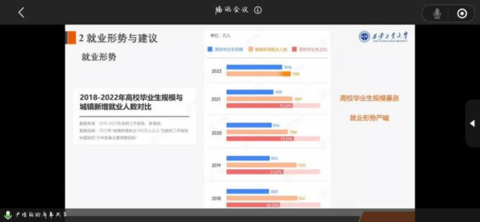 讲座中,尹培丽主要围绕各阶段学位培养目标、就业形势与建议、考研形势与建议、考公形势与建议四个方面展开讲述。