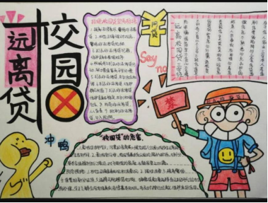 青春本该纯粹自由,不该被“校园贷”的阴霾笼罩。为增强同学们的金融安全意识,筑牢防范校园贷的思想防线,引导大家树立健康消费观,现特举办“远离校园贷,青春不负债”主题创作活动,以手抄报、海报、征文为载体,让理性消费理念扎根校园,让青春在无债阳光下绽放光彩!