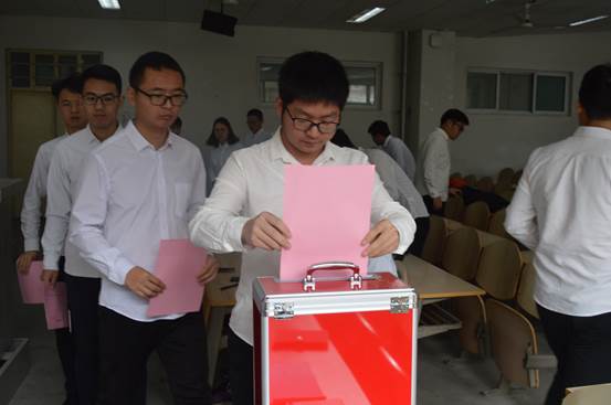 大会伊始,由刘浩浩核查出席本次会议的代表人数并宣读本次选举的规章制度,同时介绍本次会议的检票员和计票员。第二项,宣读裁撤、替换人员名单,全体代表举手表决,全票通过。第三项,进行新代表的选举,共有5位候选人,在公平公正的透明投票制度下,由在场的每位代表投出自己珍贵的一票。最终,本次双代会的团代会投票结果为:王晶替换原团代会代表唐雅莉;余成林、王鑫博、胡盼替换原团代会员工代表冯潇晨、戴亚澳、李瑞成;余成林、王鑫博、胡盼替换原学代会代表冯潇晨、戴亚澳、李瑞成。