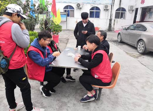 15位活动成员到达草滩敬老院后,大家各自分工明确,分三组进行志愿服务活动。部分同学拿起工具打扫院子,清理垃圾,为老人们提供了一个良好的生活环境。部分同学发挥自己的兴趣特长,陪老人下象棋、打扑克,与此同时,大家也抓住机会向老人们请教一些生活知识,老人们也都耐心的一一讲解。另一部分同学则陪老人们聊天,老人们亲切的询问志愿者们的近况,并且向大家讲述了自己的往事。在活动进行中,志愿者们与其他公司同学进行了交流互动,提高了大家的社交能力,同时希望可以为志愿服务奉献出自己的一份力量。