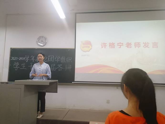 在各位参选人员结束答辩后,许格宁老师对本次大会进行总结,首先提出新任主席、副主席应尽快适应自己的职位和工作,希望各位主席、副主席尽快磨合,共同为best365官网入口注册的建设尽出自己的力量。之后许格宁老师对看到这么多自愿留干的干事表达喜悦之情,也为即将上任的各位干部门加油打气,同时也告诫各位参选人员在工作的时候也不能扔下学习,应平衡工作和学习之间的关系。至此,本次大会圆满结束。