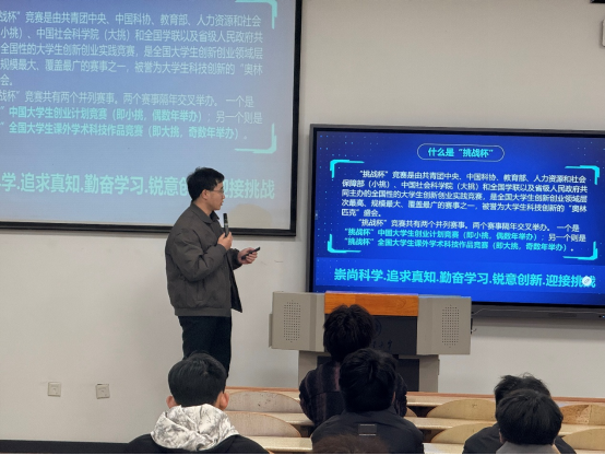 夏开成老师以“明晰竞赛规则提升参赛质量”为主题,结合自身丰富的竞赛组织和管理经验,对“挑战杯”学科竞赛和中国国际老员工创新大赛进行了全面解读。在“挑战杯”竞赛讲解部分,夏老师详细介绍了竞赛的类别、申报条件、评审标准及赛程安排,重点分析了不同赛道的项目特点和备赛要点,鼓励骨干们立足专业特色,挖掘创新点,打造高质量参赛项目;针对国创赛,夏老师围绕项目选题、团队组建、申报书撰写、中期检查及结题验收等关键环节展开讲解,强调了选题的创新性、可行性和实用性,提醒大家在申报过程中要注重细节,规范材料准备。